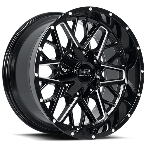 Gloss Black Milled Hardrock Bomber Wheel (Series H714). One Piece Aluminum.
