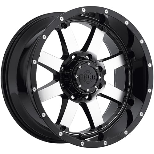 Gloss Black w/ Mirror Machined Face & Spot Milled Lip Accents Gear Alloy Big Block Wheel (Series 726M). One Piece Aluminum.