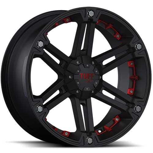Flat Black W/ Red Inserts TUFF T01 (Series T01OR) Wheels. One Piece Aluminum.