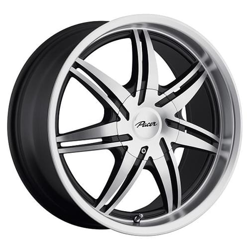 Mirror Machined Face and Lip with Gloss Black Accents & Clear-Coat Pacer Mantis Wheel (Series 773MB). One Piece Aluminum.
