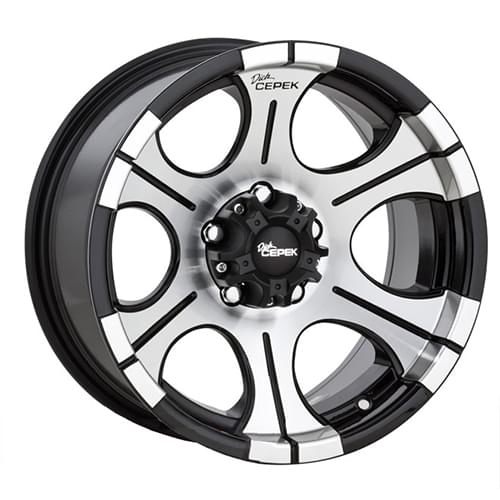 Machined with Gloss Black Accents Dick Cepek DC2 Black Wheel. One Piece Aluminum.