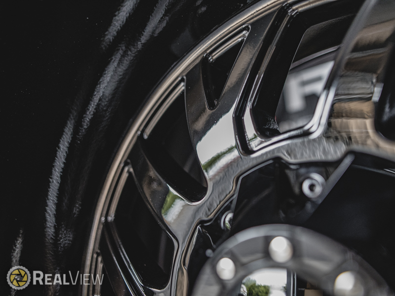 Full Gloss Black Rolling Big Power Glock Wheel (Series 65RFB). One Piece Aluminum. Open Lugs.