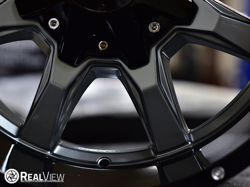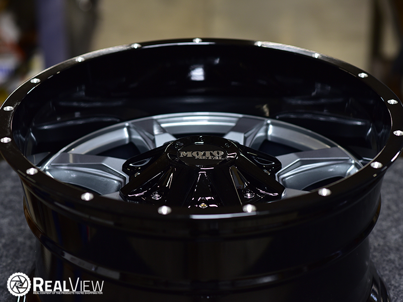 Gloss Gray Center W/ Gloss Black Lip Moto Motel MO970 (Series MO970G) Wheels. One Piece Aluminum. Open Lugs.