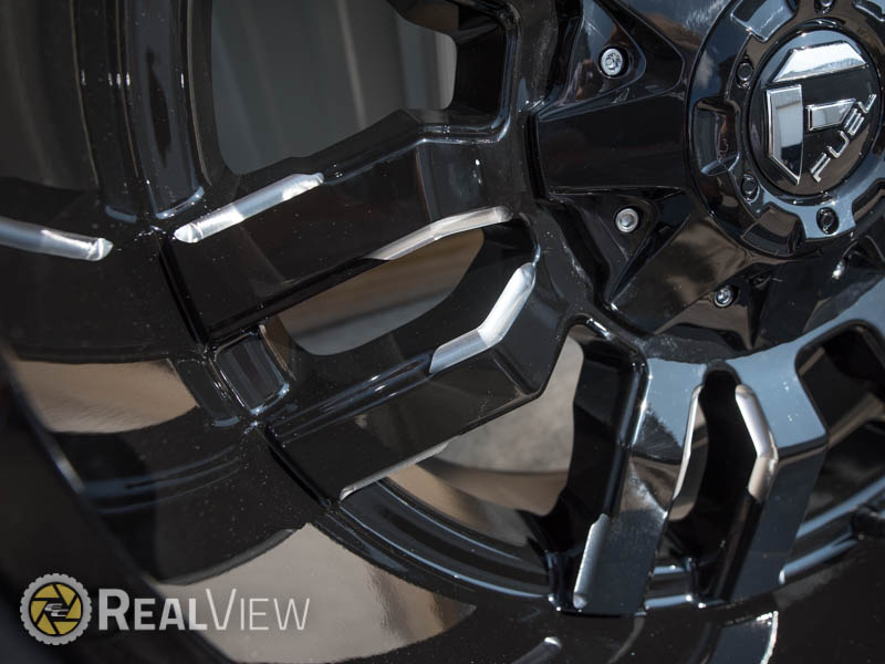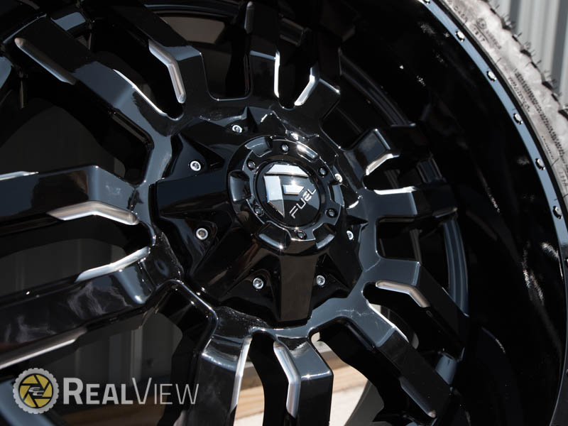 Gloss Black & Milled Fuel Offroad Sledge Wheel (Series D595). One Piece Aluminum. Open Lugs.