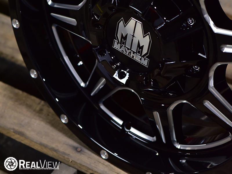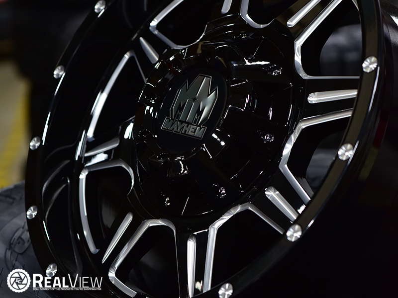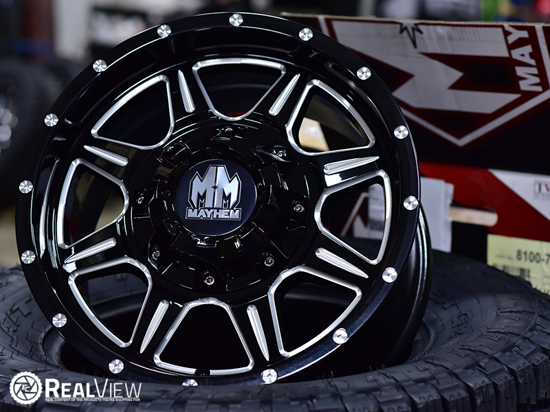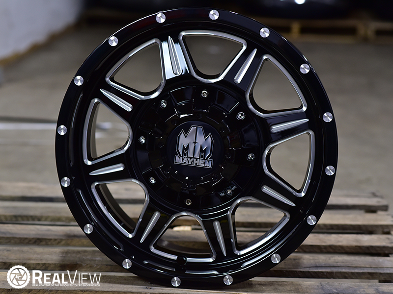 Gloss Black W/ Milled Spokes Mayhem Monstir Wheel (Series 8100M). One Piece Aluminum. Open Lugs.