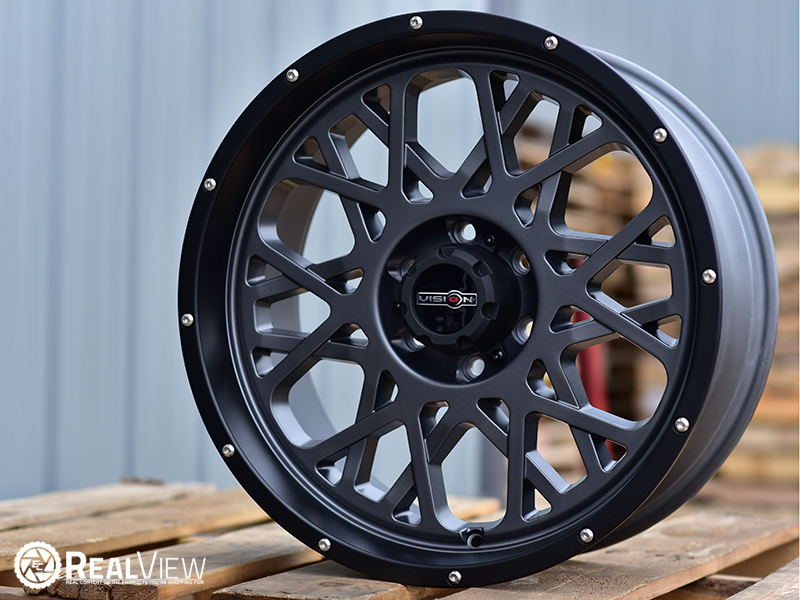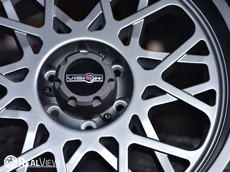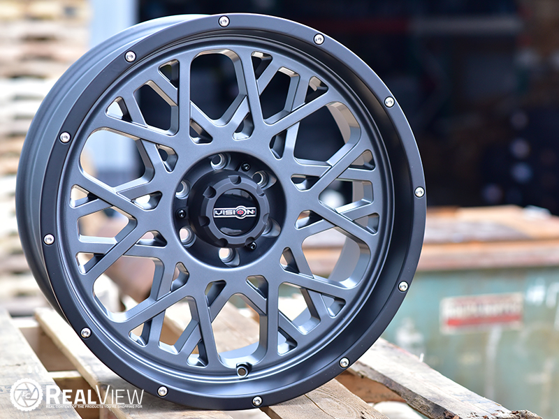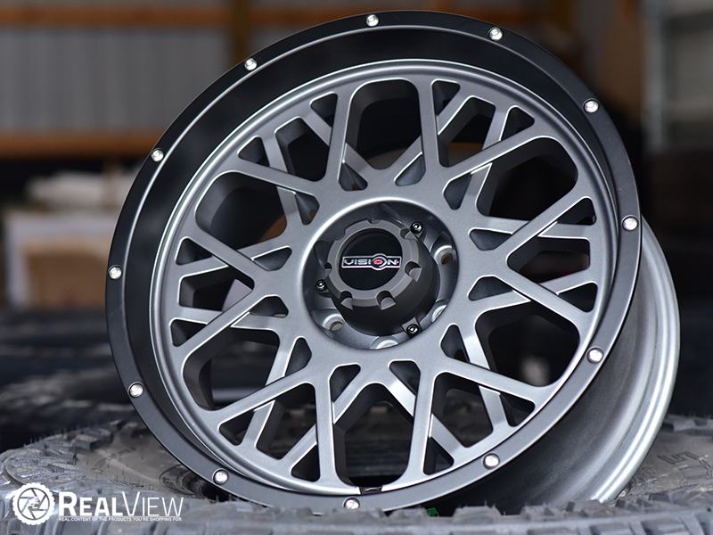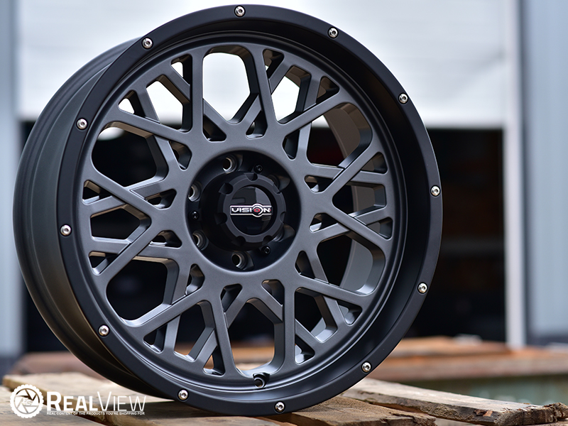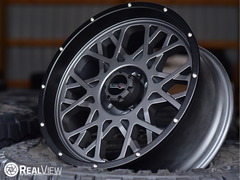 Anthracite W/ Satin Black Lip & Chrome Bolts Vision Offroad Rocker Wheel (Series 412ABL). One Piece Aluminum. Closed Lugs.