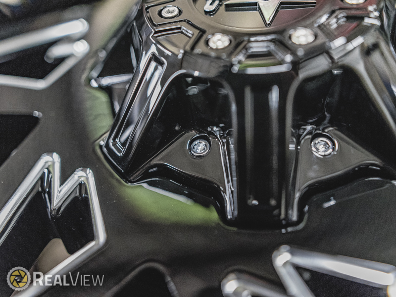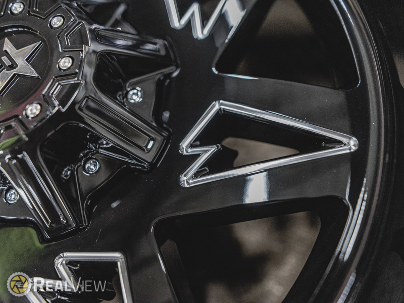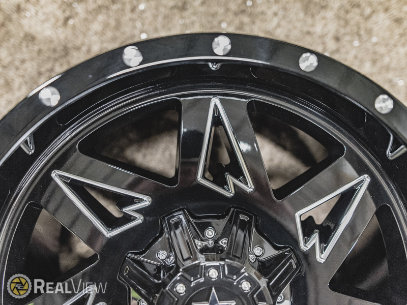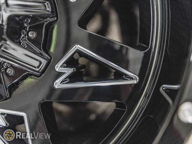 Gloss Black W/ CNC Accents Rolling Big Power Quantom Wheel (Series 71RGB). One Piece Aluminum. Open Lugs.