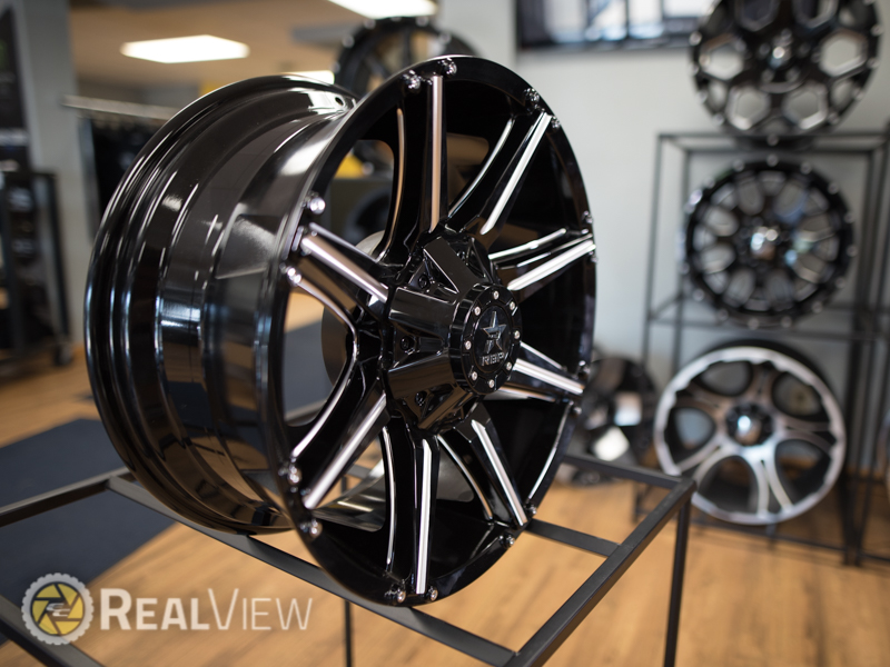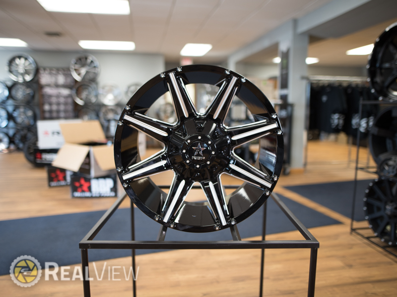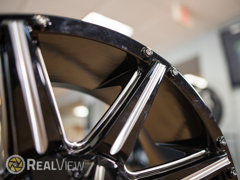 Gloss Black W/ CNC Accents Rolling Big Power 98R Wheel (Series 98RBG). One Piece Aluminum. Open Lugs.