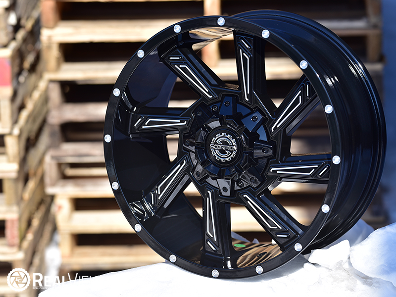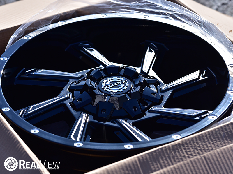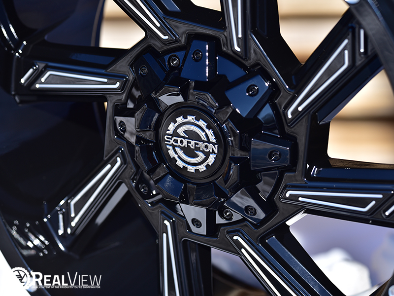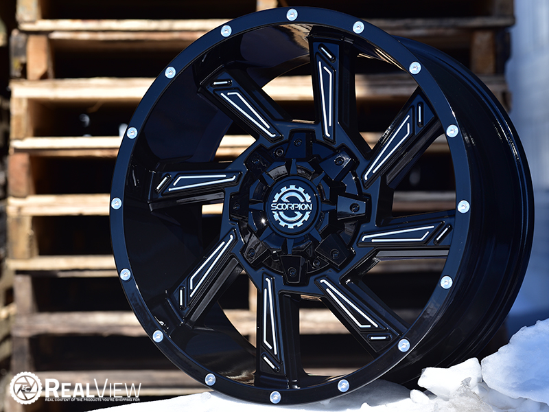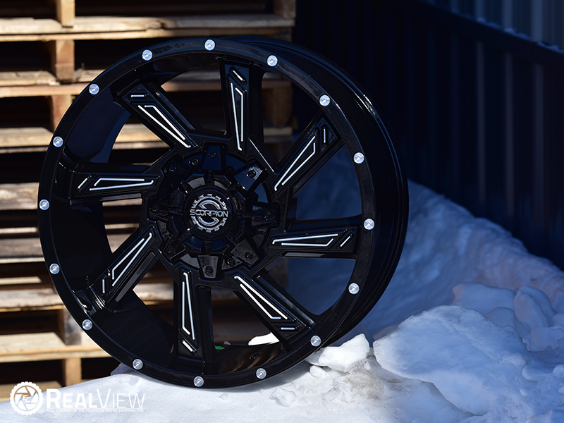 Gloss Black Milled Scorpion SC-25 Wheel (Series SC-25). One Piece Aluminum. Open Lugs.