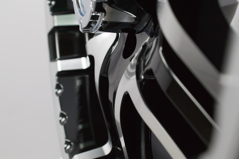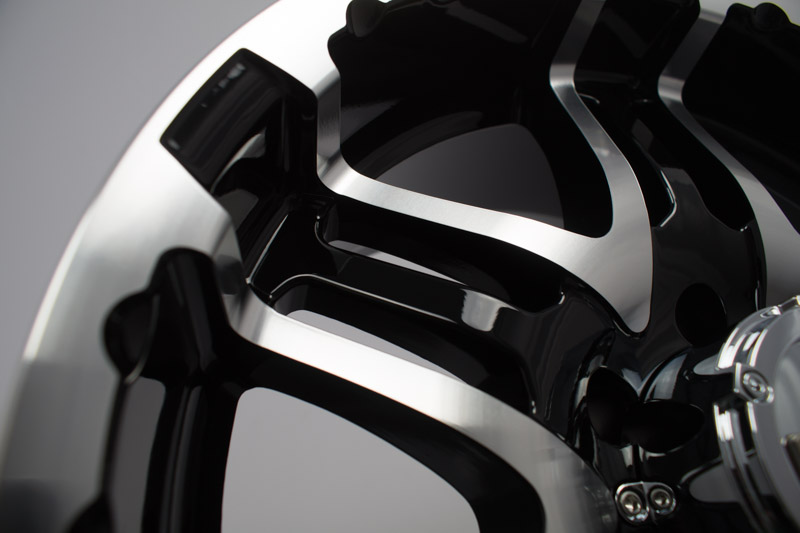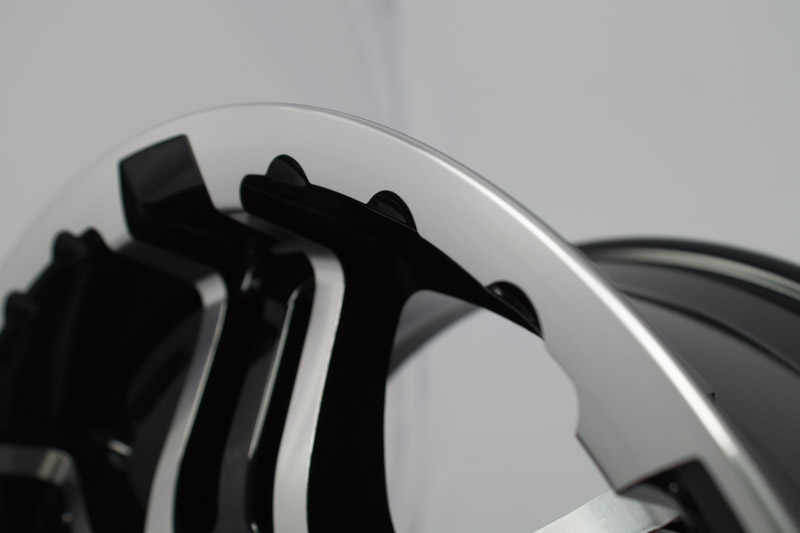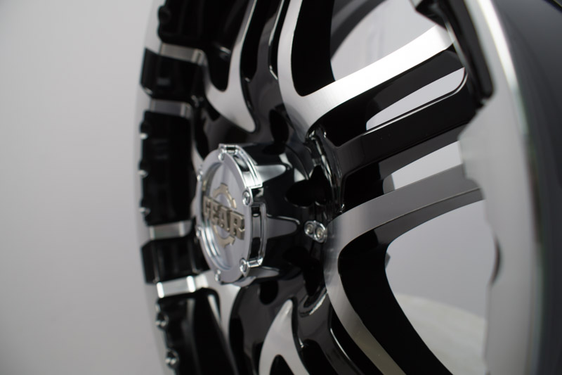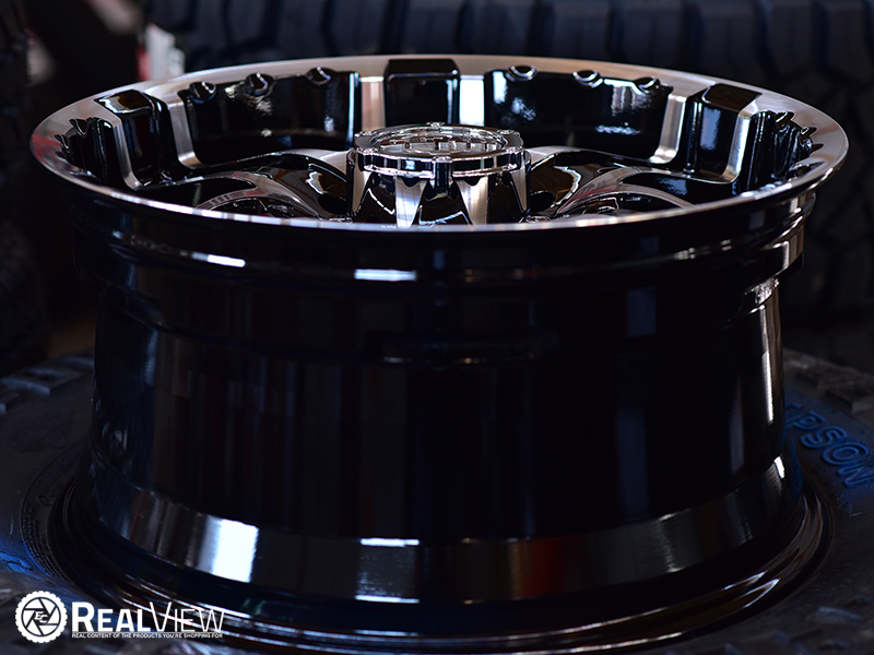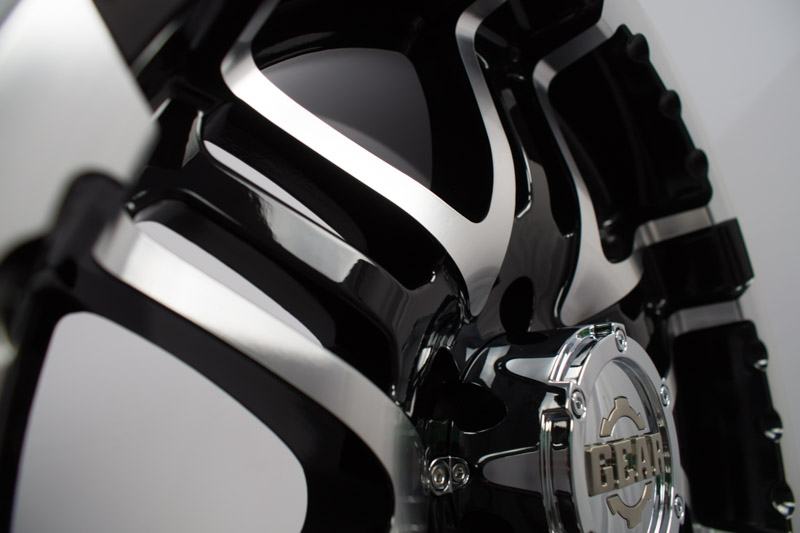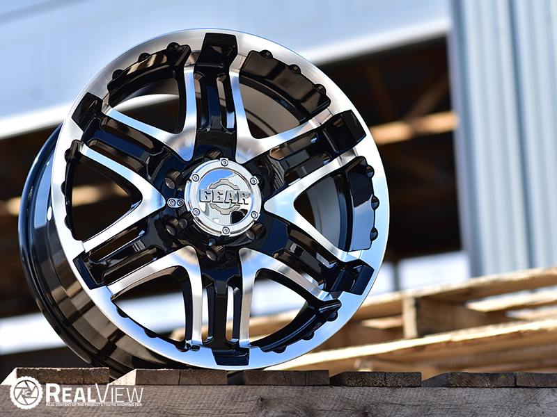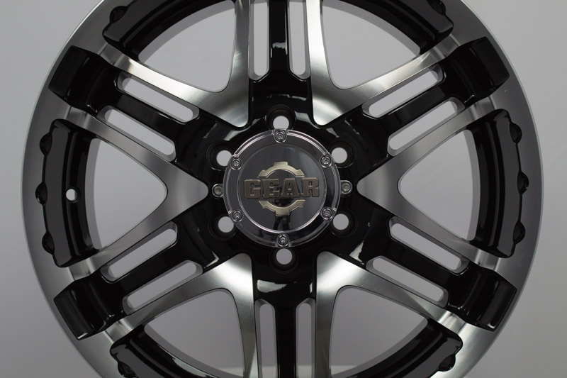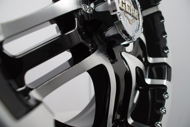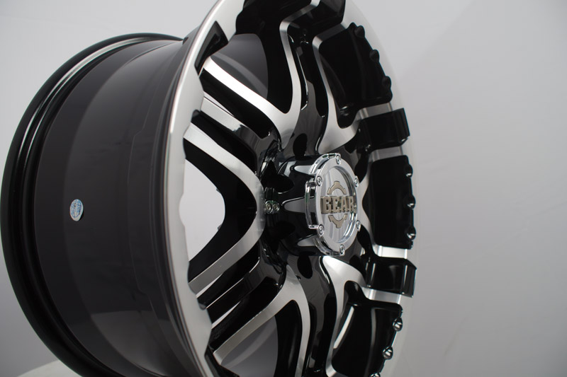 Gloss Black Machined Gear Offroad Double Pump Wheel (Series 713MB). One Piece Aluminum. Closed Lugs.