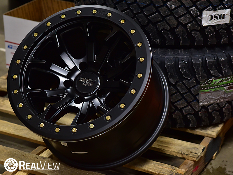 Matte Black Dirty Life DT-1 W/ Simulated Beadlock Ring Wheel (Series 9303MB) One Piece Aluminum. Forged Beadlock Rings Sold Separately. Closed Lugs.