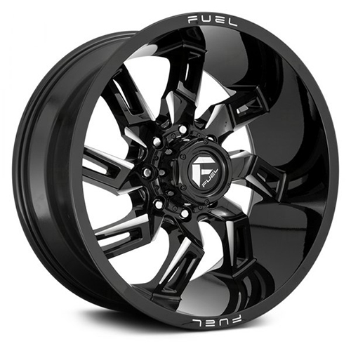 Gloss Black Milled Fuel Lockdown Wheel (Series D747). One Piece Aluminum. Closed Lugs.