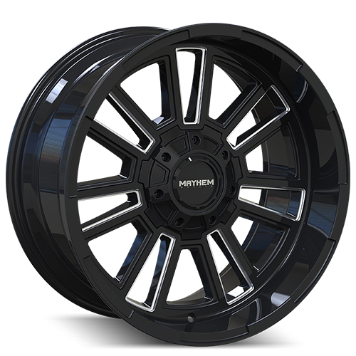 Black W/Milled Spokes Mayhem Apollo Wheel (Series 8115). One Piece Aluminum. Open Lugs.