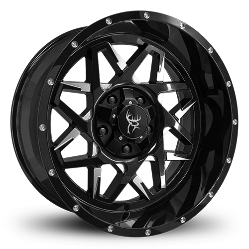 Gloss Black W/ Milled Face Buck Commander Caliber Wheel (Series CA). One Piece Aluminum. Closed Lugs.