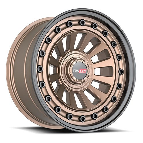 Matte Bronze W/ Black Bolts & Lip Vortek Offroad VRD-702 Wheel (Series Defense). One Piece Aluminum. Open Lugs.