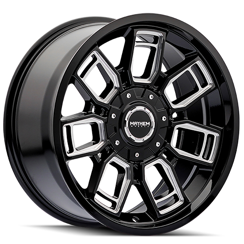 Gloss Black W/ Milled Spokes Mayhem Ordinance Wheel (Series 8118). One Piece Aluminum. Open Lugs.