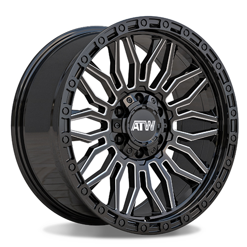 Gloss Black W/ Milled Spokes & Black Lip ATW Offroad Nile Wheel (Series NIL.) One Piece Aluminum. Closed Lugs.