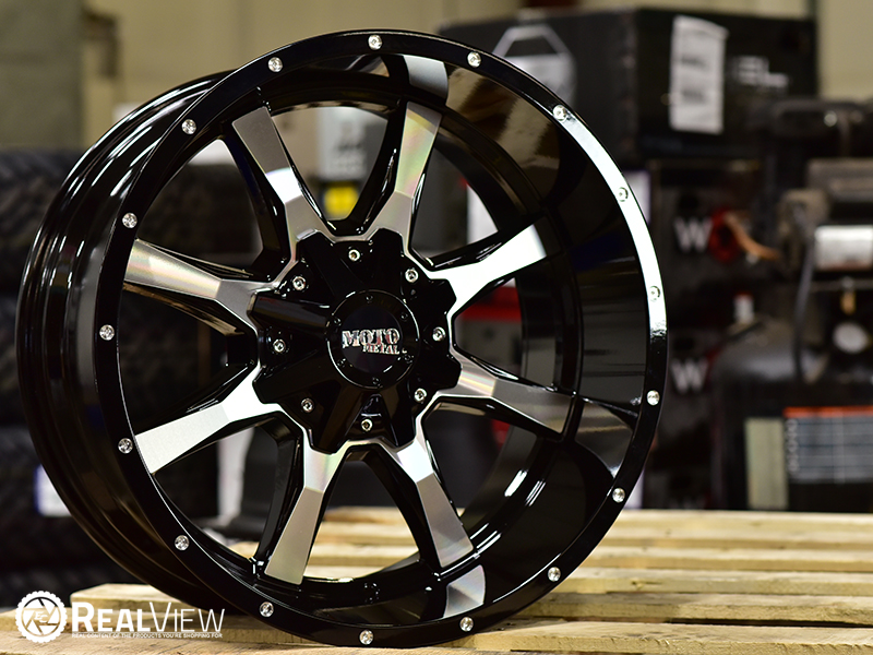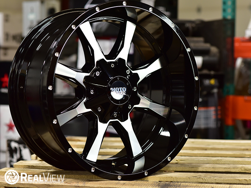 Gloss Black Machined Face Moto Motel MO970 (Series MO970B) Wheels. One Piece Aluminum. Open Lugs.