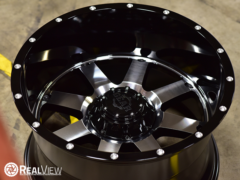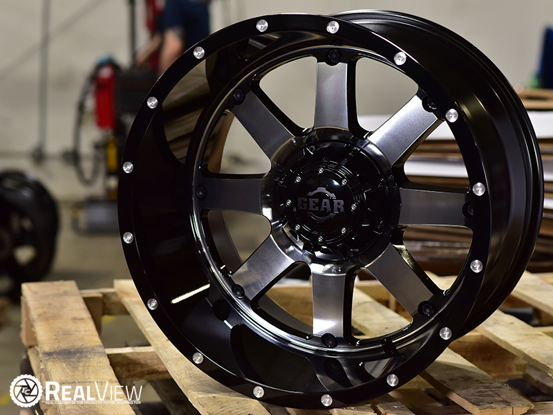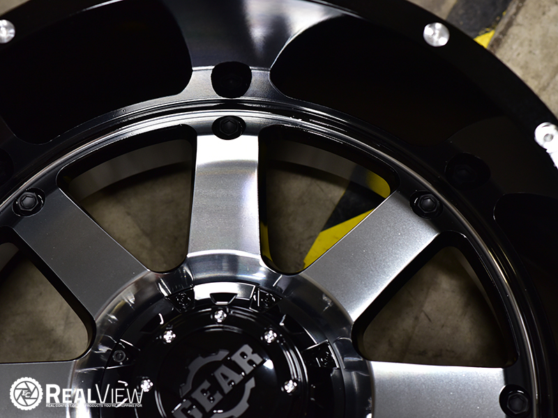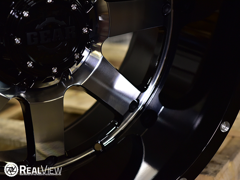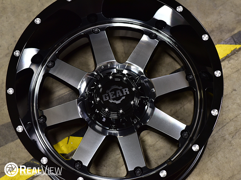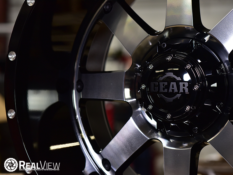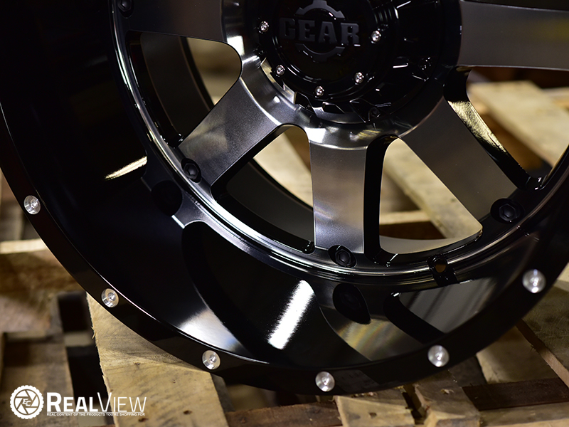 Gloss Black W/ Mirror Machined Face & Spot Milled Lip Accents Gear Offroad Big Block Wheel (Series 726M). One Piece Aluminum. Closed Lugs.