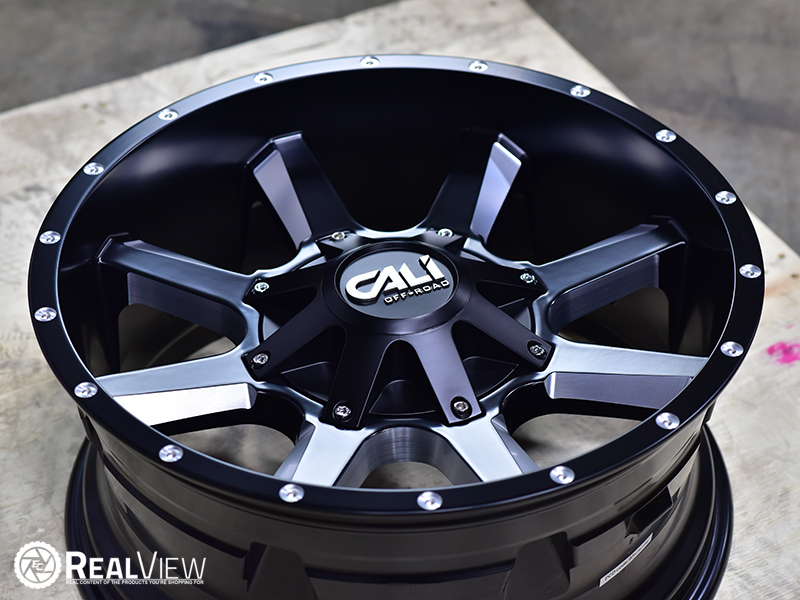 Satin Black W/ Milled Spokes Cali Offroad Busted Wheel (Series 9100SB). One Piece Aluminum. Open Lugs.
